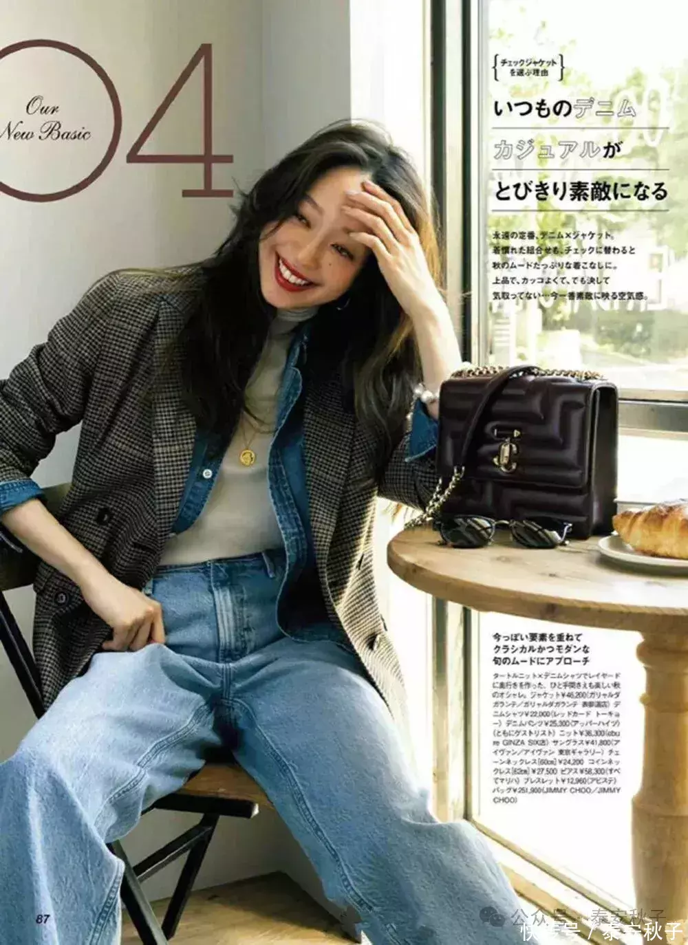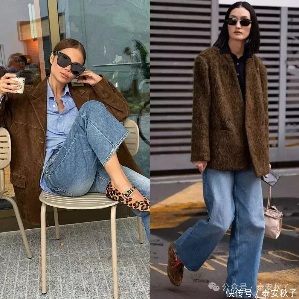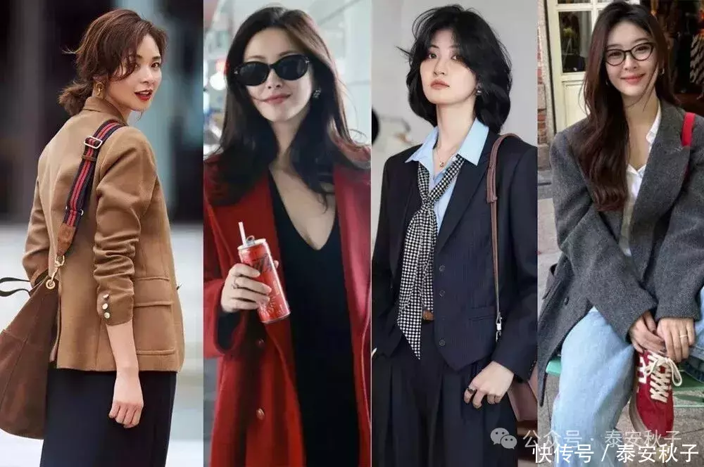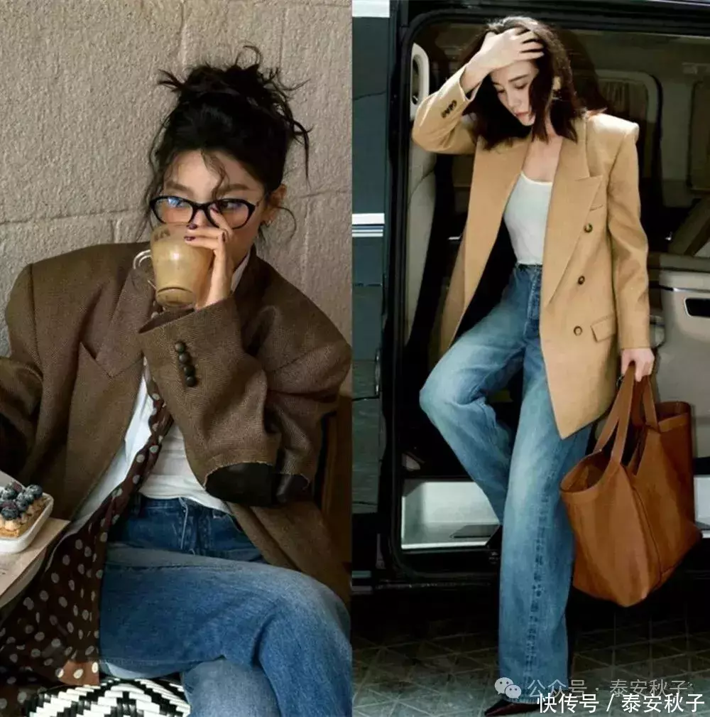 如果你是性格洒脱的女生,很推荐用牛仔裤配西装来穿,会有一种不羁的洒脱与大气,妥妥的时髦精无疑了。